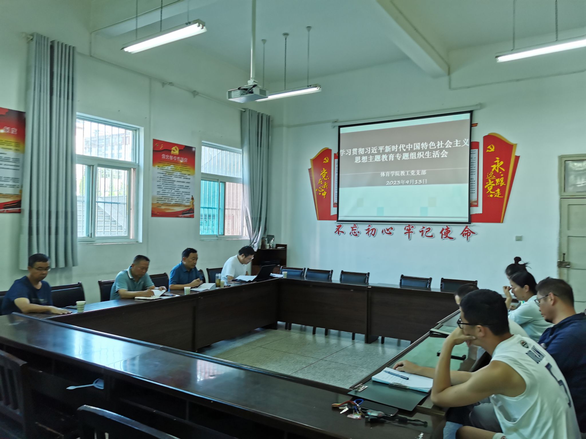 为深入贯彻落实党的二十大精神,严格执行党的组织生活制度,进一步发挥党员先锋模范作用,体育学院教工党支部于2023年9月13日下午召开了学习贯彻习近平新时代中国特色社会主义思想主题教育专题组织生活会,会议在BB贝博艾弗森官网会议室举行,本次会议由支部组织委员贾西栋主持,支部全体党员参加,贝博官网校长钟生海以普通党员身份参加,BB贝博艾弗森官网党支部书记高立平也列席了本次会议。