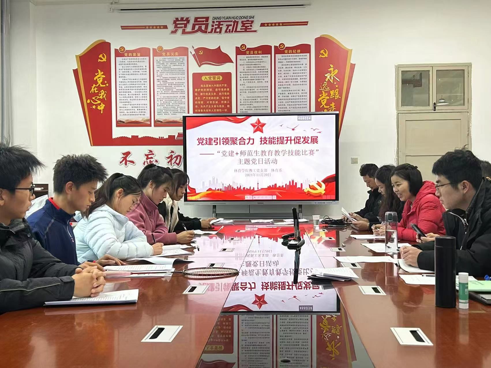 为深入贯彻党的教育方针,推动党建工作与专业教育的深度融合,进一步提高贝博官网师范生教育教学技能,BB贝博艾弗森官网教工支部联合体育系于11月21日开展了“党建+师范生教育教学技能比赛”主题党日活动。学院领导班子成员,教工党支部书记、体育系主任等部分党员教师参加了活动。