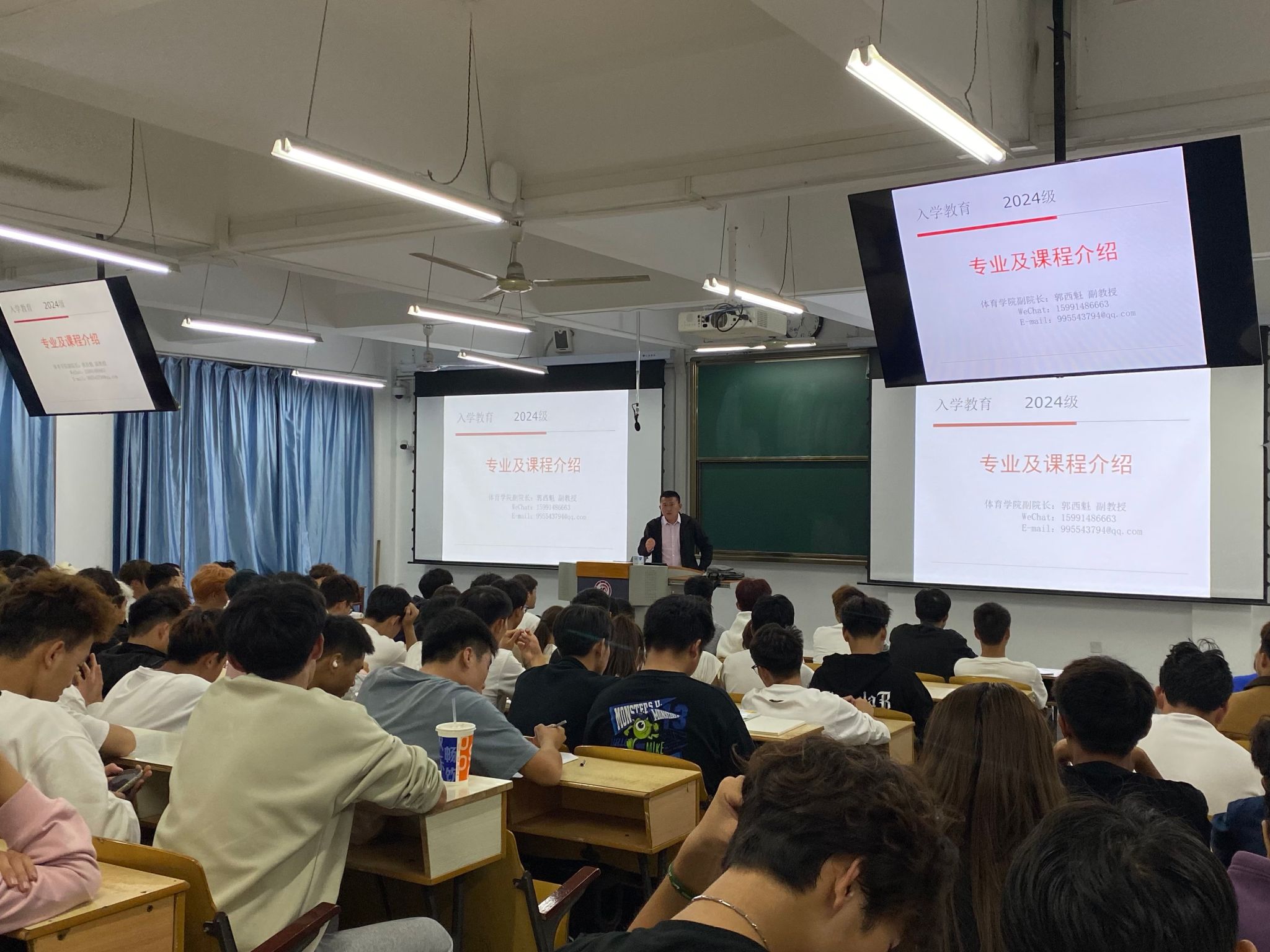 2024年10月15日晚7点,BB贝博艾弗森官网教学副院长郭西魁在1510教室为2024级全体新生开展入学教育课,郭院长对体育教育专业做了具体而生动的介绍,包括专业教学特色、主要课程与特点、毕业条件及职业描述、职业成长及典型工作任务、专业人才培养方案、学院及专业教学资源,并以自身求学经历为例勉励广大新生要以梦为马,不负韶华,争做有价值的时代新人。在讲座的结束时,郭院长为现场同学耐心答疑解惑。