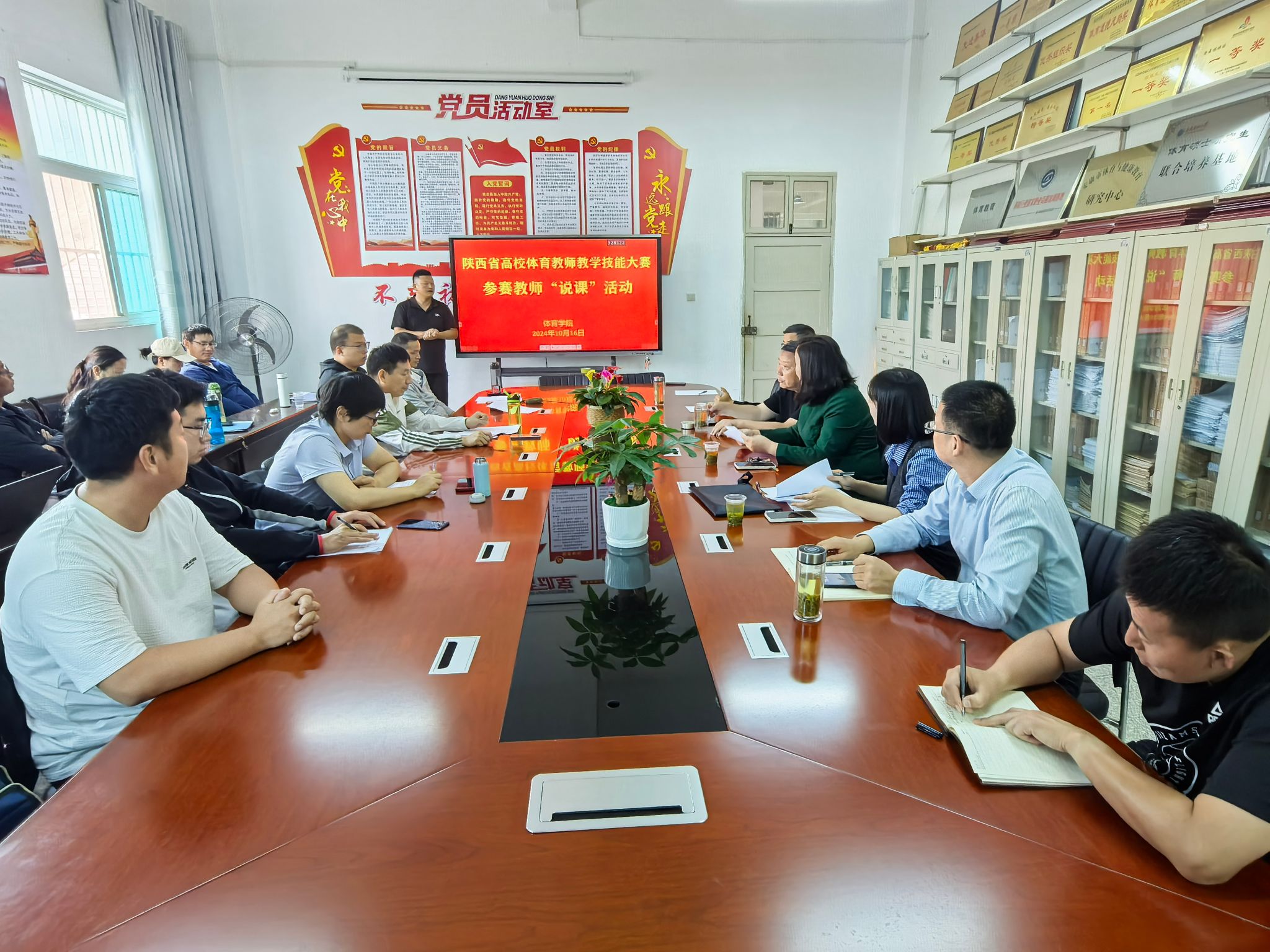 10月16日下午,BB贝博艾弗森官网为备战陕西省高校体育教师教学技能大赛,特举办“说课”磨课活动。活动邀请了文学与传媒学院的邸玲老师及BB贝博艾弗森官网吕仙利、冯德学、鲁宗成、李靖等多位专家进行现场指导。
