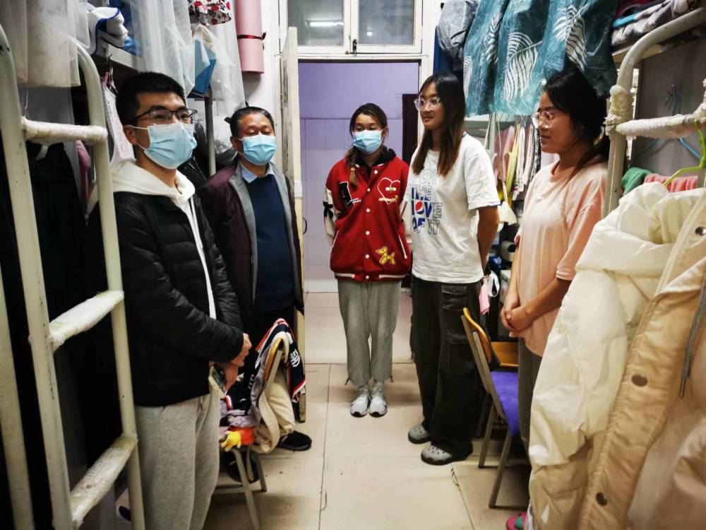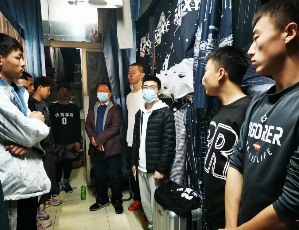 在学生宿舍,辅导员王立向同学们解读了当前省市区及学校有关疫情防控管理的政策和规定,提醒大家在疫情特殊时期要提高防控意识,坚持以大局为重;高立平详细询问同学们疫情期间学习、生活情况,听取了同学们对学校和学院在教学管理、生活保障、课余训练等方面的意见和建议,并回答了同学们关切的热点问题。