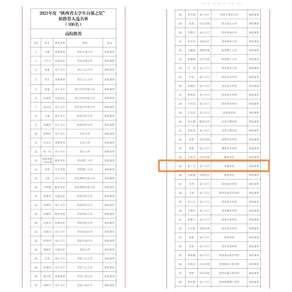 贝博官网学生张一凡荣获2021年度“陕西省大学生自强之星”称号
