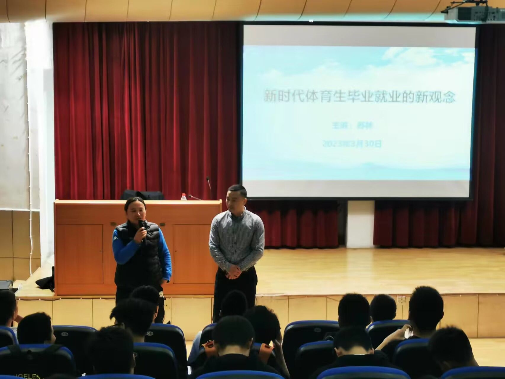 为进一步拓宽贝博官网学生的就业思路,帮助体育生树立正确的就业、择业观念,3月30日下午,贝博官网特邀请西安瑞德体育健身有限公司总经理苏林在江南校区一号楼6楼报告厅开展“新时代体育生就业的新观念”讲座。学院党总书记高立平,院长吕仙利与贝博官网20级、21级、22级无课学生一起聆听了讲座。整个活动仪式由毕业班辅导员康梦瑶主持。