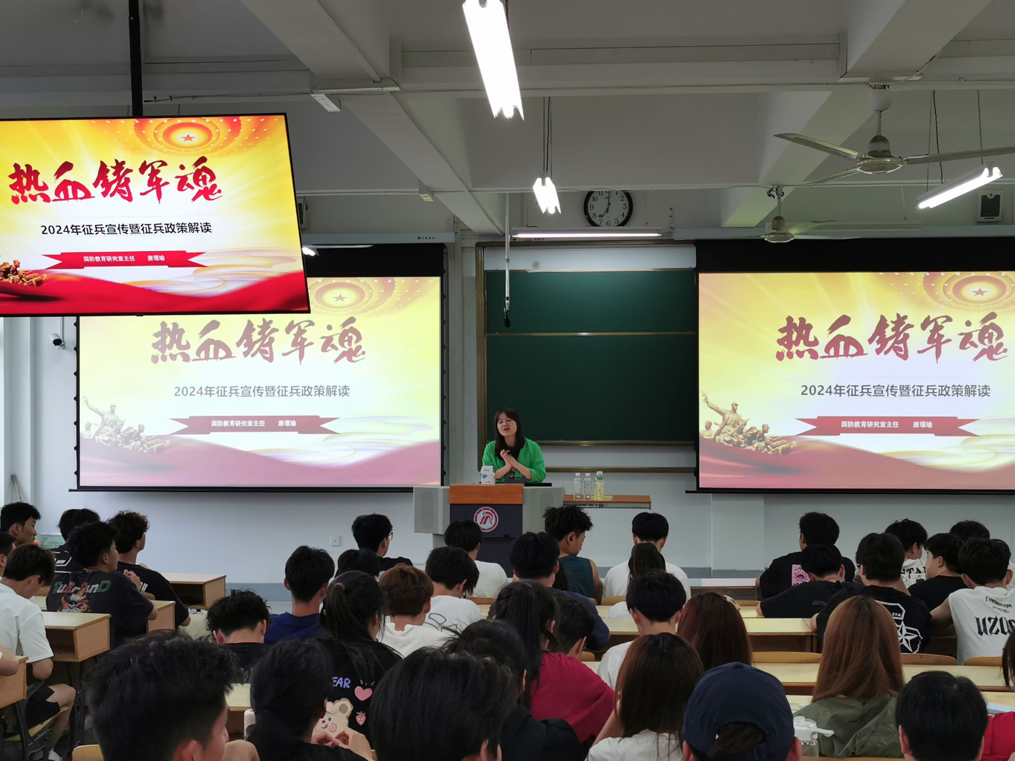 为贯彻落实国家征兵政策,鼓励在校大学生响应国家号召应征入伍,投身军旅,绽放青春。4 月25日晚,我院邀请贝博官网国防教育研究室主任唐璟瑜老师在1510教室开展“热血铸军魂——2024年征兵宣传暨征兵政策解读”主题宣讲活动。学工办主任王立、2023级辅导员刘姚成及2023级全体学生参加了宣讲会。
