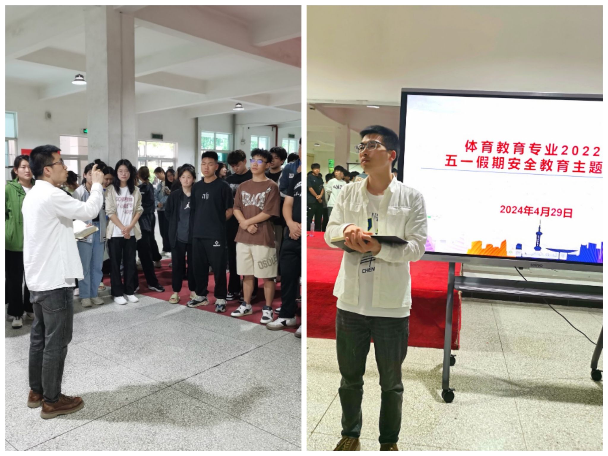 加强宣传教育,强化安全意识。4 月29日晚,贝博官网在体育馆二楼召开全院学生安全教育大会,院长吕仙利向全体同学传达了学校关于“五一”放假的安排和具体要求;副院长郭西魁从国家安全、校园安全、生命安全等方面给同学们做了生动的教育。学院副院长李靖、团总支书记王毅、学工办主任王立、辅导员刘姚成也一起参加了安全教育大会。同时,“我是体育生”公众号上推出“五一出游安全”攻略,引导学生做好防范措施。