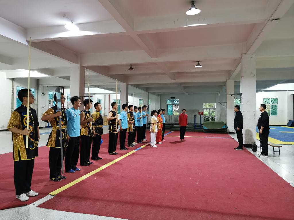 10月6日,BB贝博艾弗森官网副院长郭西魁、武术队教练廖建发、学工办副主任王立,特邀教练何爱明,一起组织武术队同学进行了以赛促训、以赛带练的队内模拟赛。为了让队员真正体会到久违的比赛感觉,也为了检验假期突击训练的成果,模拟赛完全按照正式比赛的程序和要求进行,队员们也都进行了套路和器械的充分展示。模拟比赛结束后,各位评委对运动员的表现进行了综合点评,在表现难度、动作的稳定性、视频录制技巧等方面进行了细致的分析,为10月7日的正式比赛打好基础。