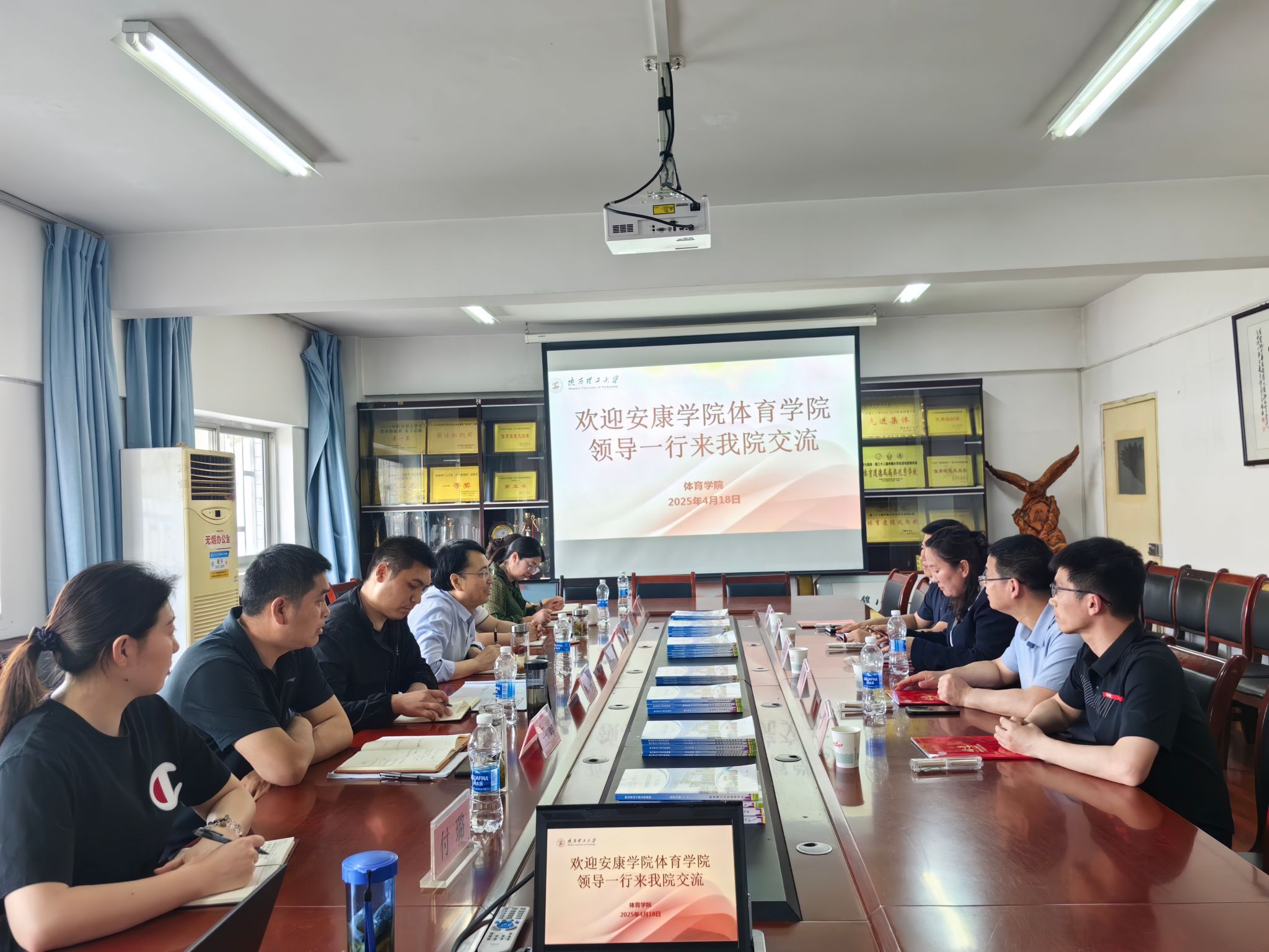 4月18日下午,BB贝博艾弗森官网党总支书记韩晔、院长吕仙利、副院长郭西魁、学工办主任王立、团总支书记王毅赴陕西理工大学BB贝博艾弗森官网进行交流学习。交流会由陕西理工大学BB贝博艾弗森官网院长邱毅主持,学院党总支书记钟晨、副书记何刚、专职组织员李雪萍、副院长王峰及各教研室主任参加了此次交流。双方就体育教育专业师范专业认证、体育专业硕士点申请等一系列问题进行深入的交流。